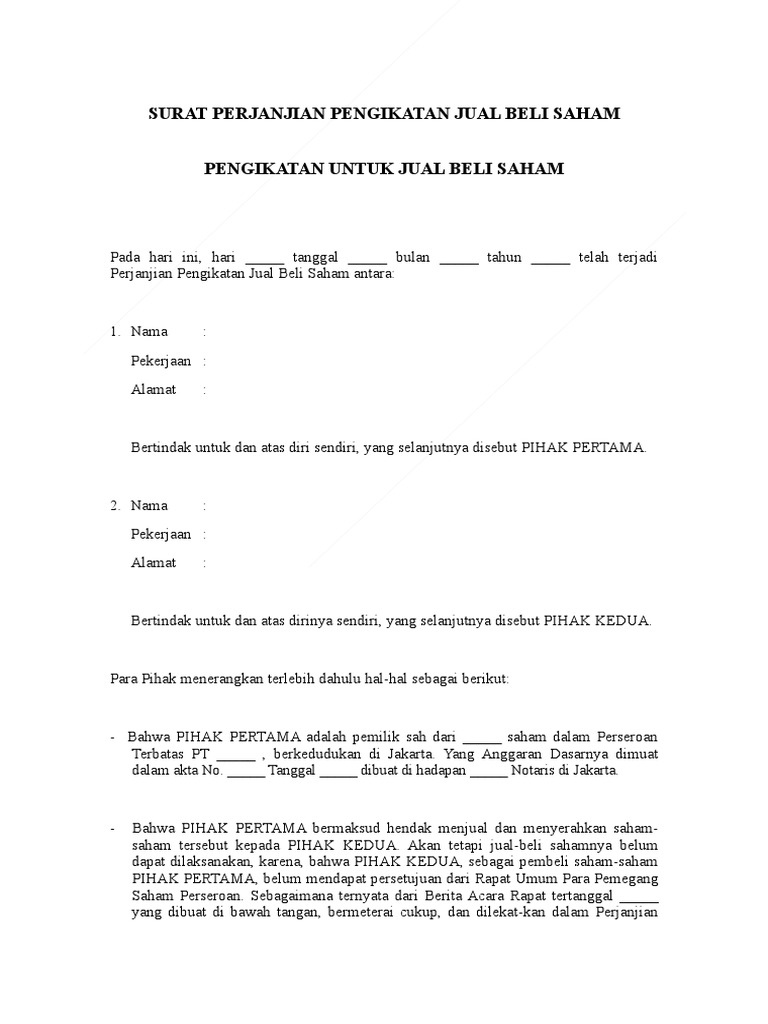 Surat Perjanjian Pengikatan Jual Beli Saham Pdf